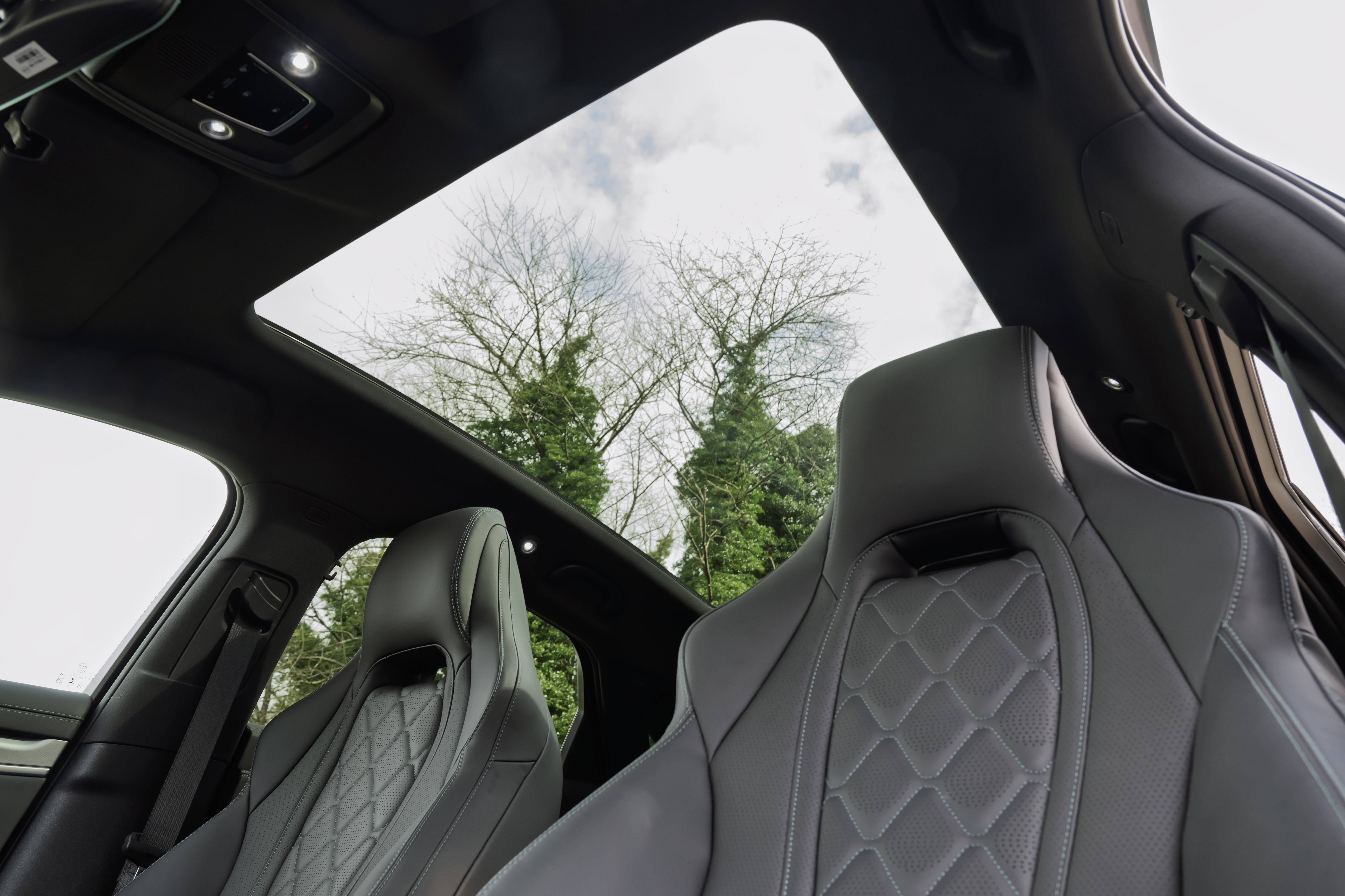Inside, premium materials, soft-touch surfaces, and ambient lighting create an inviting atmosphere, while the panoramic glass roof floods the space with natural light. The spacious interior offers generous legroom for all passengers, ensuring supreme comfort on every drive.